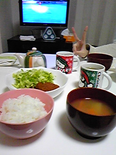 コロッケはスーパーのお買い得品だが、味噌汁を作ってキャベツを刻んだのは私。